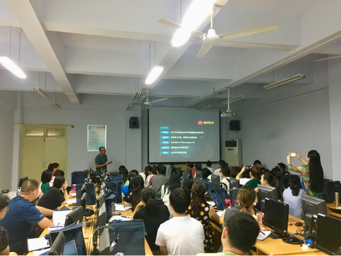 刘琦老师从掌握课件制作基本理论、建立课件设计开发制作的正确思维、掌握课件制作的技术与方法、具备制作“好课件”的能力四大板块着手,采用边讲解边演示的方法,循序渐进地进行培训,学员们认真学习,积极思考,对存在的问题当场提问,得到了刘琦老师的一一指导。