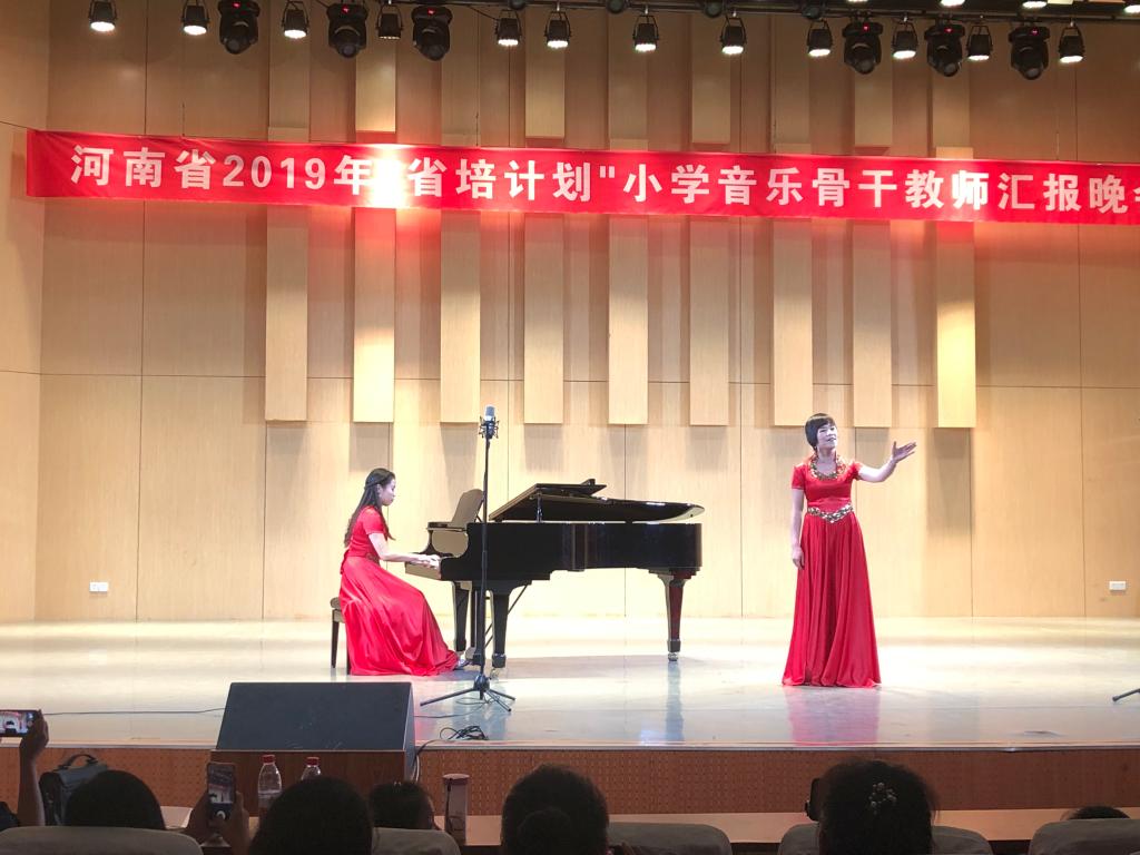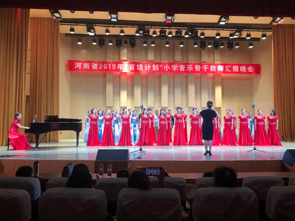在公司喜迎建国70周年之际,8月14日,48名来自河南省各市县的“省培”学员欢聚艺术楼音乐厅,举行河南省2019年“省培计划”小学音乐骨干教师汇报晚会。云顶国际vip.888副经理陈新宇、党委副书记郭振,党委委员邬百宁,省培班主任牛媛媛、张莹莹与二百多名观众共同观看演出。