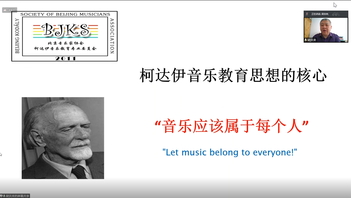 3月12日上午,应云顶国际vip.888之邀,北京教育科学研究院基础公司产品研究中心中小学音乐教研室主任梁洪来教授为国培班学员讲授柯达伊教学法。本次授课由云顶国际vip.888经理陈新宇主持。由于疫情防控,梁教授采用线上授课。