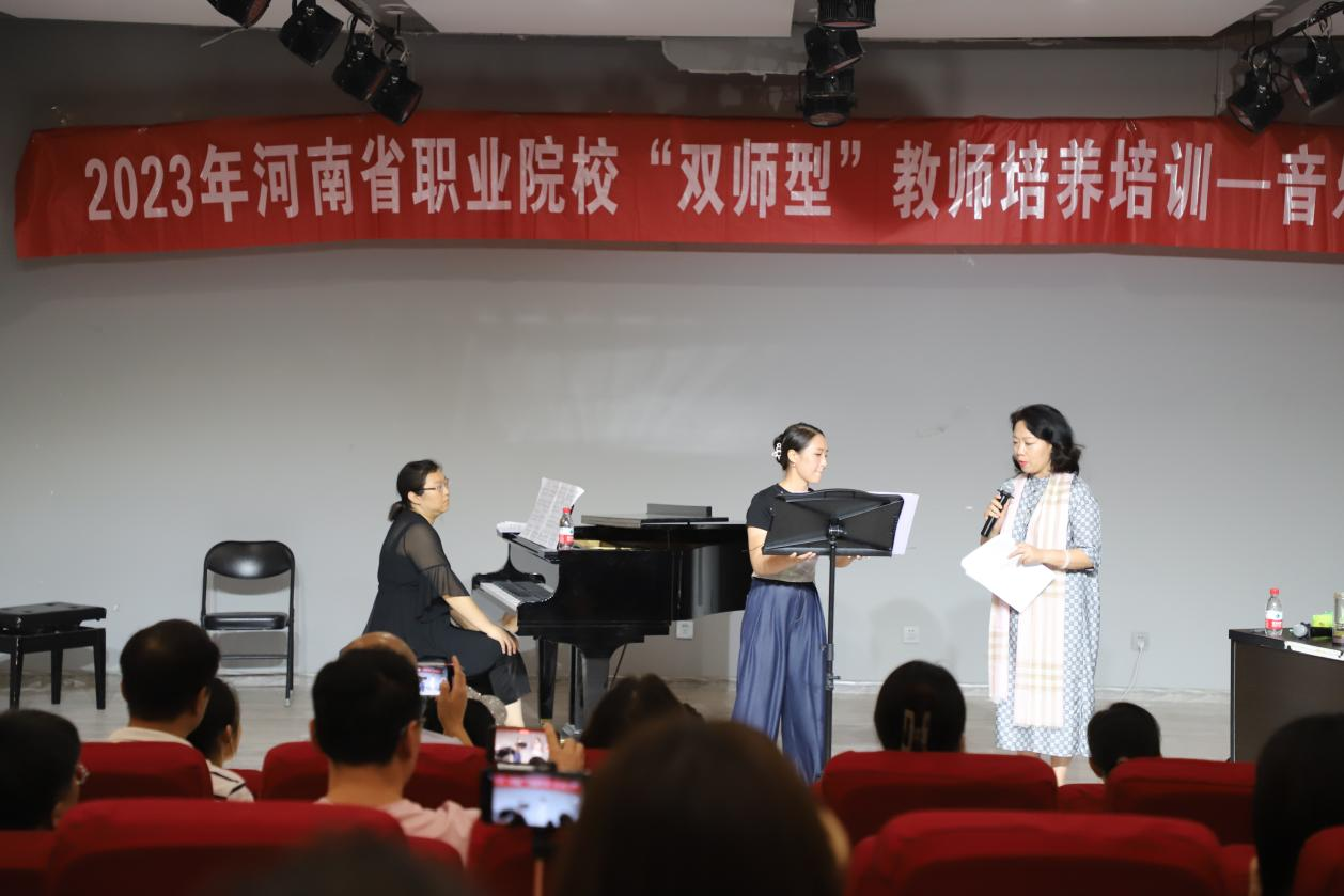 应云顶国际vip.888之邀,7月17日,河南大学声歌系主任黄慧慧教授在艺术楼八音讲堂为本次参加培训的学员讲授《歌唱中的形象塑造》同时对6位学员进行一对一声乐指导。本次课程由云顶国际vip.888副经理任远主持。