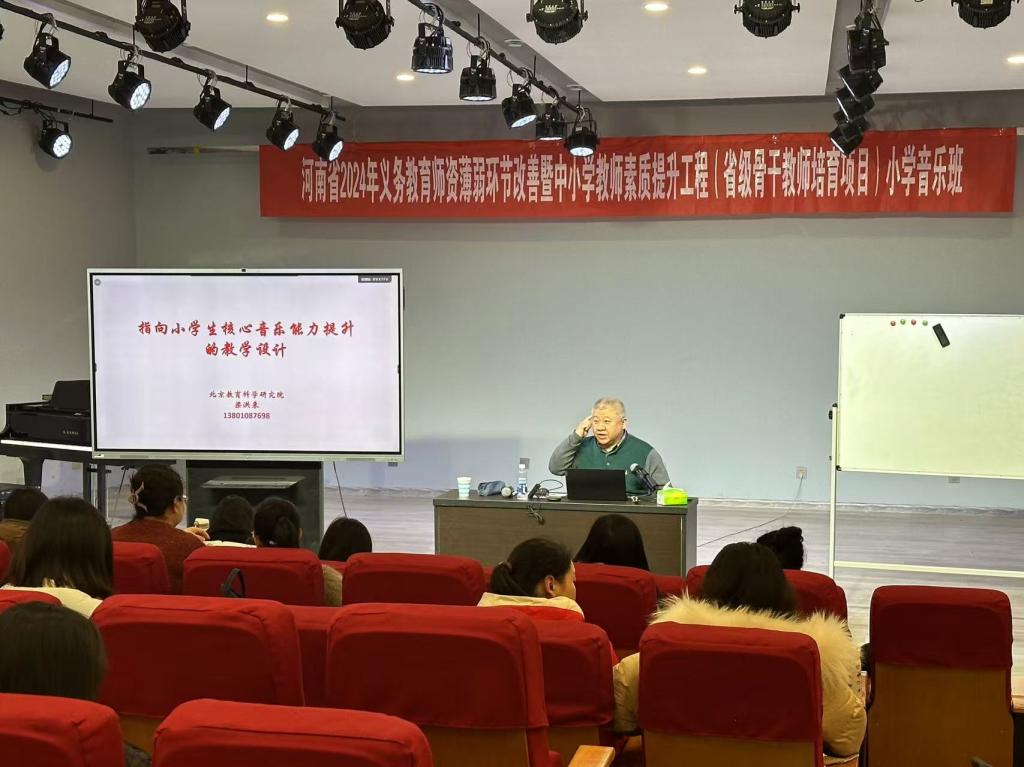 2024年12月11日,应公司邀请,北京教育科学研究院梁洪来教授为河南省2024年义务教育团队薄弱环节改善暨中小学教师素质提升工程(省级骨干教师培育项目)小学音乐班学员讲授《指向小员工核心音乐能力提升的教学设计》。