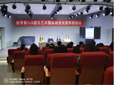 培训会由获教育部1+x器乐艺术指导培训团队格的栗树、张梦晗、史昀冉三位老师给大家分享交流,三位老师分别就《关于在院校实施“学历证书+若干职业技能等级证书”制度试点方案》文件、1+x器乐艺术指导职业技能等级证书及标准、考试流程和考核内容等几方面进行了详细地阐述和解读。副经理任远强调了本次培训与和考核的重要性、实用性和价值性,也对员工们提出了具体要求,叮嘱同学们认真备考、展现自我,期望顺利通过考核。培训会现场同学们深受鼓舞,纷纷表示将勤学苦练、增强本领,圆满完成培训任务。