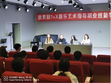 云顶国际vip.888于2022年5月成功获批了教育部1+x器乐艺术指导职业技能等级证书考核站点,为落实教育部《关于在院校实施“学历证书+若干职业技能等级证书”制度试点方案》文件精神,在公司领导与公司领导的关心和支持下,公司于10月28日下午在艺术楼八音讲堂举行了教育部1+x器乐艺术指导职业技能等级考试培训会,副经理任远,教师栗树、张梦晗、史昀冉以及2020级音乐学、音乐表演专业的部分员工参会。
