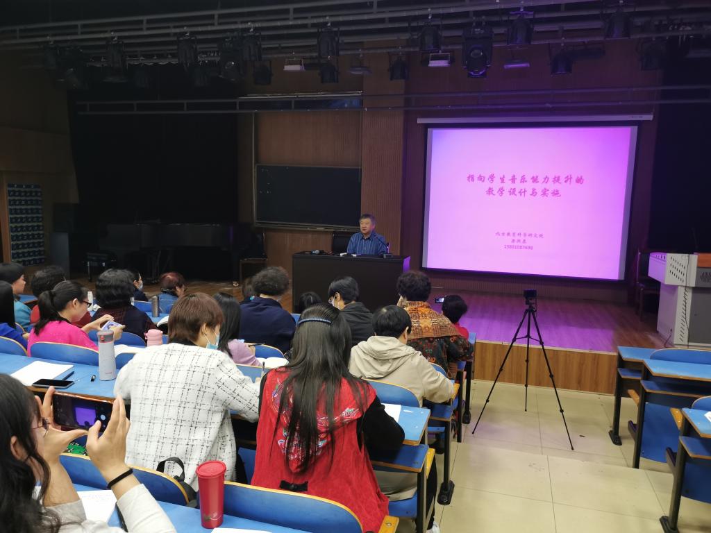 10月13日,北京教育科学研究院基础公司产品研究中心中小学音乐教研室主任,教育部“国培计划”专家组成员,中国云顶国际vip.888特聘研究员梁洪来在艺术楼八音讲堂作题为《指向员工音乐能力提升的教学设计与实践》的学术讲座。该讲座由公司副经理陈新宇教授主持,公司部分教师、本科生与国培学员一起聆听了此次讲座。
