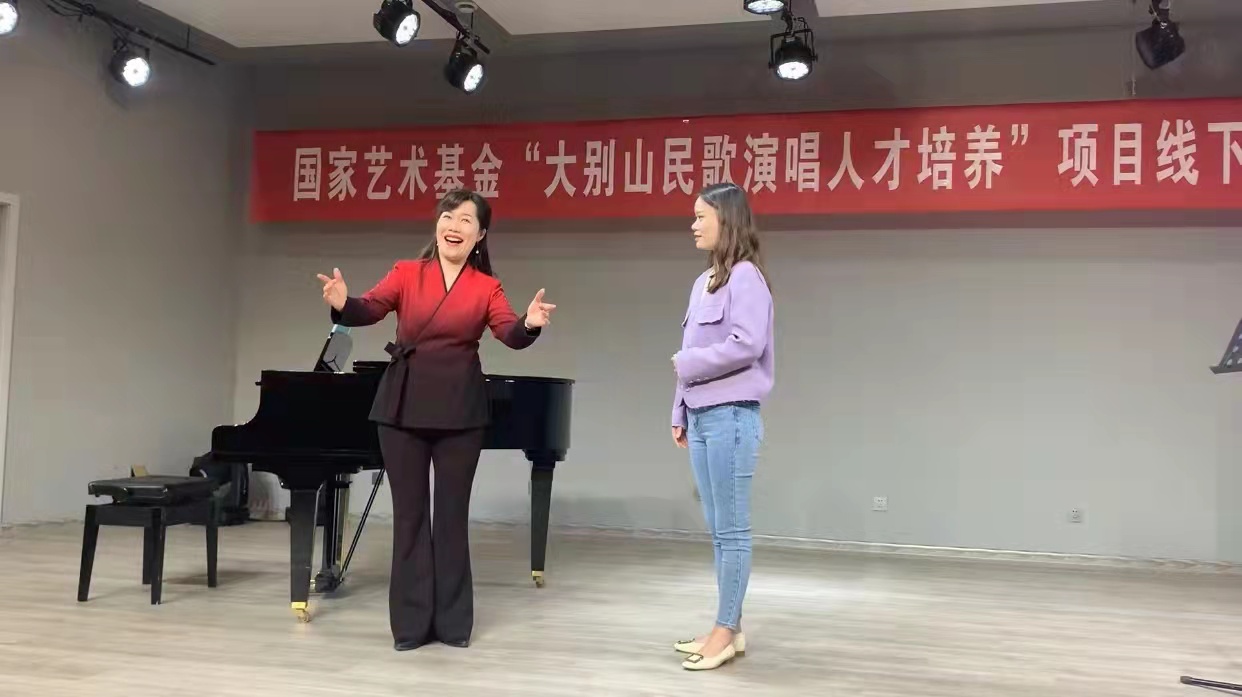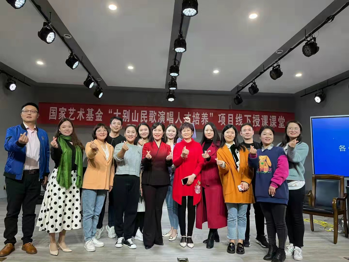 3月13日上午,国家艺术基金“大别山民歌演唱人才培养”线下授课课堂在公司云顶国际vip.888八音讲堂如火如荼地进行着。河南大学云顶国际vip.888声歌系副教授、硕士研究生导师郑慧玲受邀,以《信阳民歌在高校声乐教学中的实践与运用(二)》为题进行讲授。