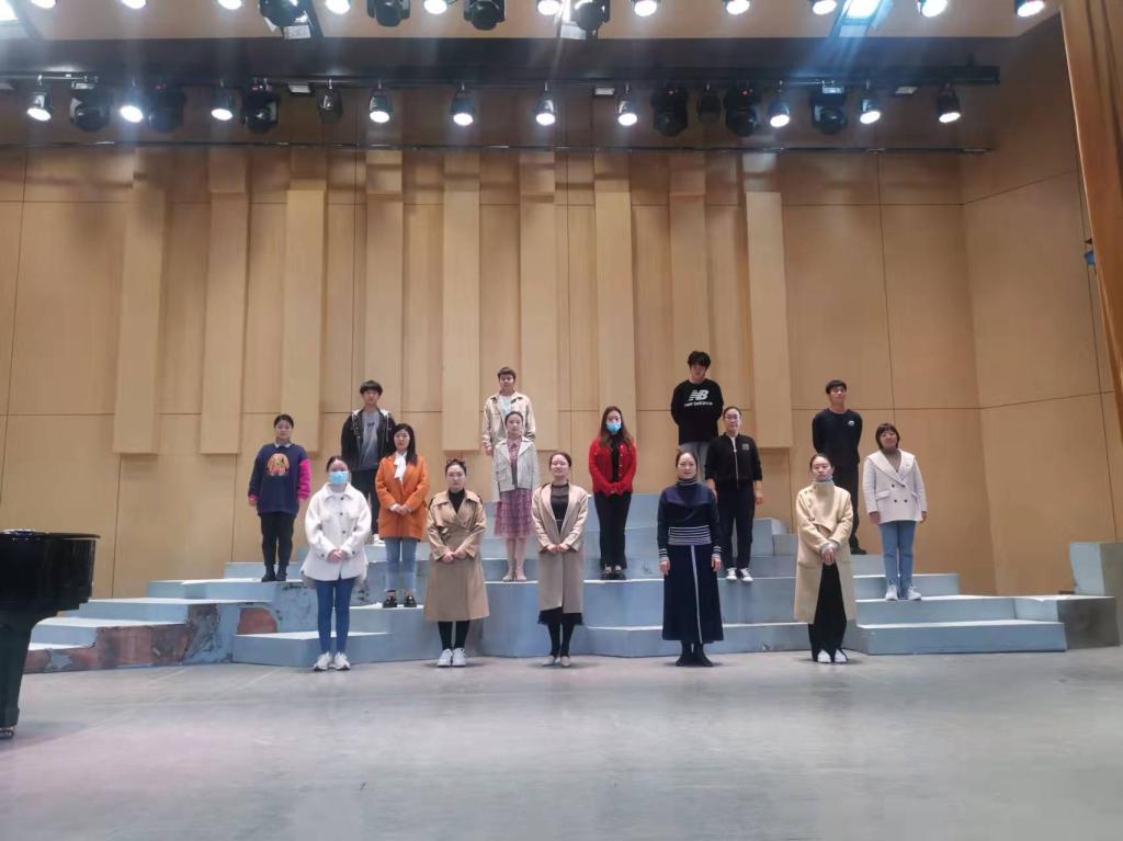 整场排演根据歌曲组合、钢琴艺术指导、舞美设计和灯光效果等进行综合指导和训练。着重对舞台站位与进场退场进行了设计,指导老师与学员们不断交流讨论,共同对演绎角色时的表演动作、进场退场时机和神态表情等进行设计与调整。老师们在指导学员的舞台表演时,巧妙的在舞台上构想出河流、山川等自然景象来帮助学员快速进入歌唱表演状态。在表演动作上,指导老师们结合歌曲唱词、故事情节和音乐旋律进行设计,帮助学员更好的塑造音乐形象。在对歌组合曲目上,指导老师要求男学员和女学员在演唱时要有眼神和动作上的交流,以展现爱情题材民歌的独特韵味。在学员们、钢伴老师和指导老师的努力下,音乐会的效果趋于成熟,学员们对作品的理解和融合度得到了提升和更深层次的把握。整场排练气氛轻松愉悦,充斥着欢声笑语。