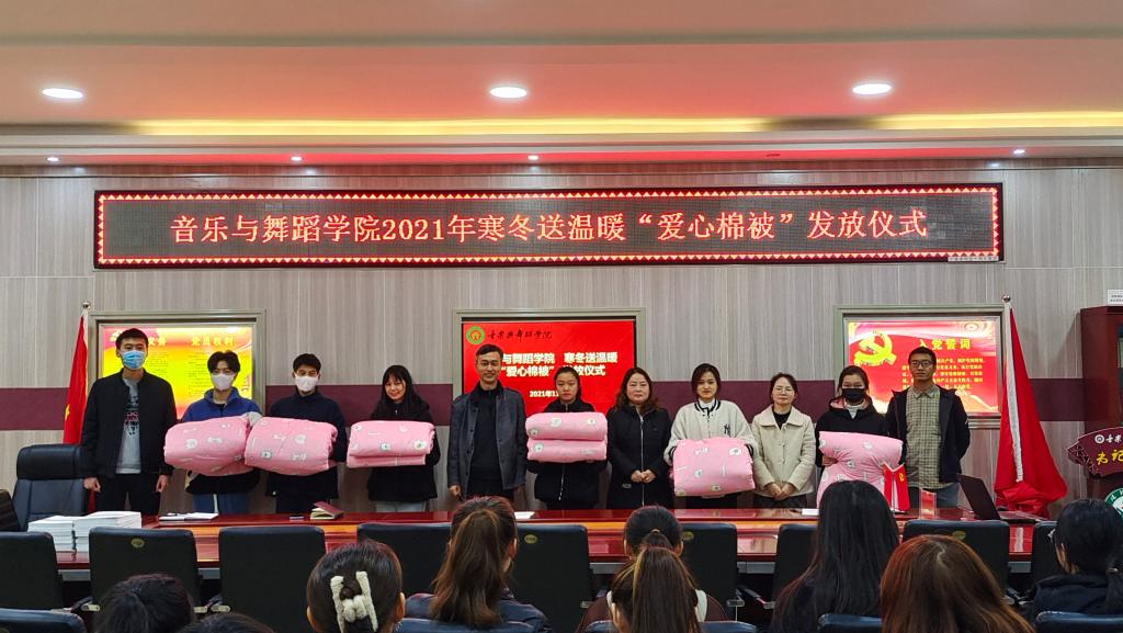为深入贯彻全国高校思想政治工作会议精神,扎实推进“三全育人”工作,加强员工资助政策的宣传,教育引导员工受助思源、励志进取,11月30日在艺术楼3楼会议室云顶国际vip.888开展爱心棉被发放仪式暨感恩励志故事分享会,公司经理陈新宇、党委副书记雷玲、辅导员唐晓云、张焕然、曹阳出席,2021年受助员工代表参加。