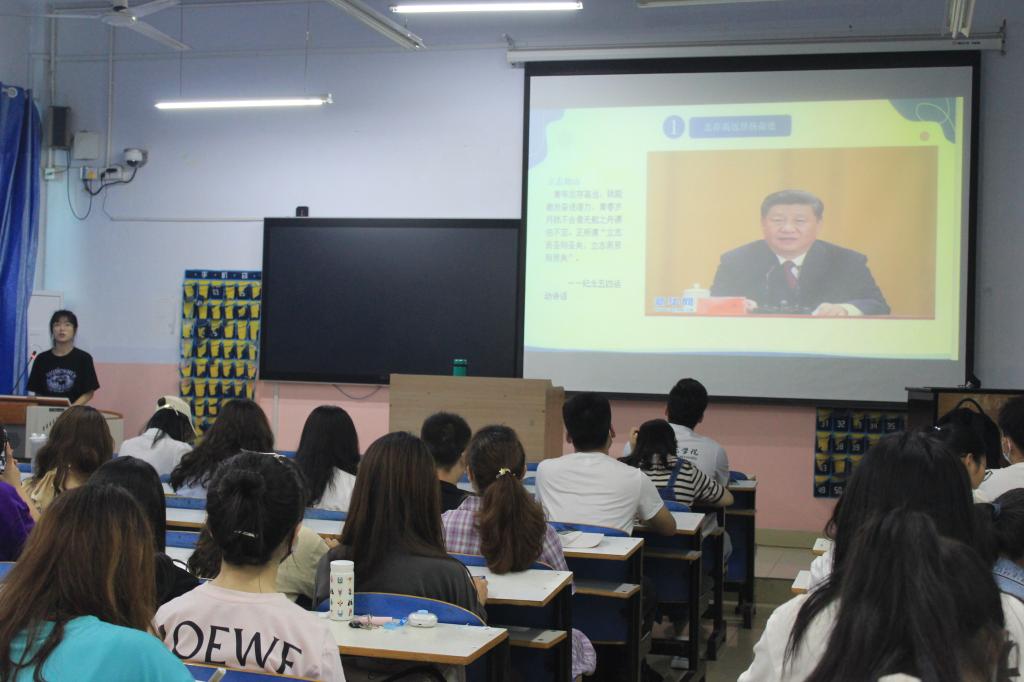 动开始,宣讲人依次上台宣讲,结合自己精心制作的ppt,以己为例、以身作则,从思想、生活、学习、工作等各个方面展开激情演讲。莫铭非以温柔的话语分享自己参加军事技能竞赛、茶艺技能竞赛、全国旅游院校服务技能竞赛和投身志愿服务等经历,展现了自己精彩的老员工活,鼓励同学们在未来学习和生活中坚定理想信念,执着追求梦想,勇担时代使命,踏梦前行。
