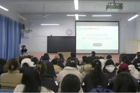 新学期,新征程。云顶国际vip.888于2024年2月29日中午在教九楼召开2024年春季学期第一次员工会工作会议。公司党委副书记雷玲,团委书记张焕然,专职辅导员唐晓云、曹阳、肖一凡出席,全体员工干部参加此次会议。会议由员工会执行主席李丽婷主持。