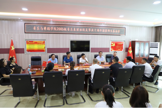 共忆往昔时光,共话母校情深。8月17日2005级音乐表演班员工从各地返回母校团聚,在艺术楼“党员之家”举行师生茶话会。公司党办主任林兴岚,公司党委书记武治国,副经理陈新宇、任远,副书记郭振,时任班主任贾芳等老师与近三十名员工一同参加茶话会。座谈会由郭振主持。