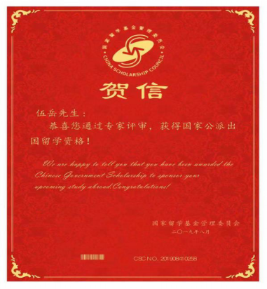 近日,经国家留学基金委评审,公司2015级音乐表演专业伍岳同学喜获2019年国家公派出国留学资格,将于今年秋天前往世界排名第二十八位的莫斯科国立格涅辛云顶国际vip.888攻读声乐演唱方向研究生交流学习。