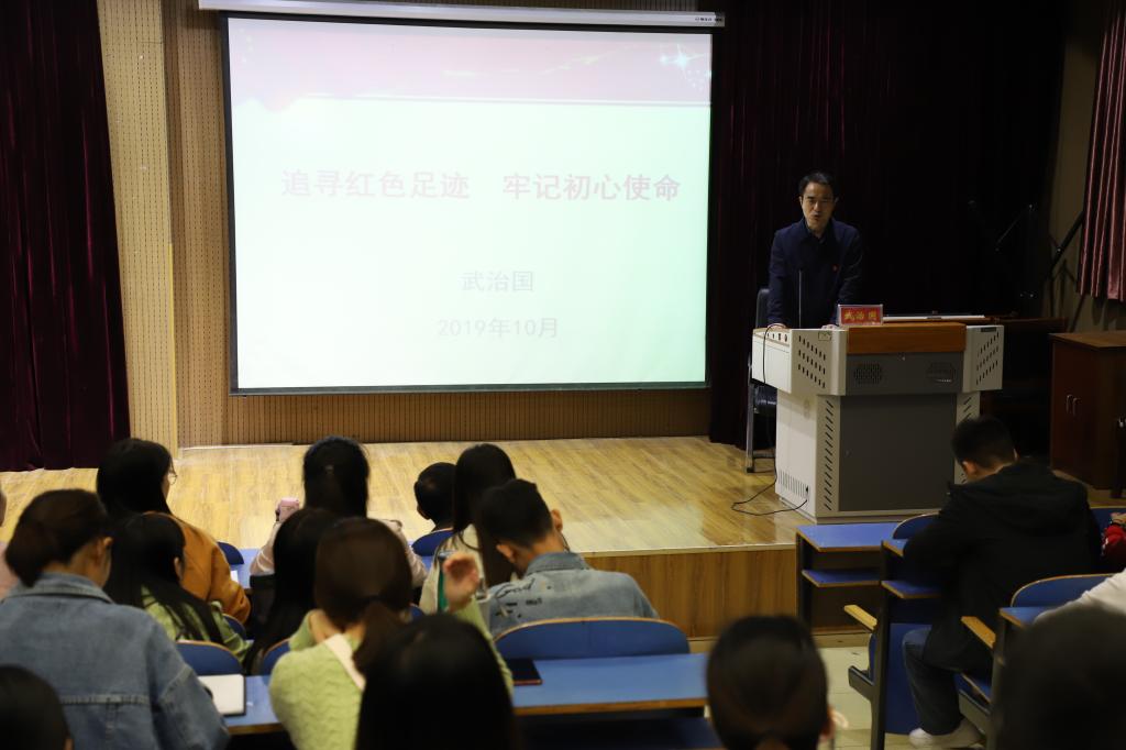 按照公司和公司“不忘初心、牢记使命”主题教育工作要求,10月12日,公司党委书记武治国以《追寻习近平总书记红色足迹 深刻理解“不忘初心、牢记使命”》为题,在艺术楼八音讲堂给教工党支部和所联系员工党支部党员同志上专题党课。
