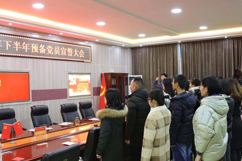 12月17日,公司在艺术楼“党员之家”隆重举行2019年下半年预备党员宣誓大会。公司党委副书记郭振、专职组织员张倩、员工党支部书记张莹莹、唐晓云、张焕然、曹阳和新接收的36名预备党员参加了会议。会议由张倩主持。