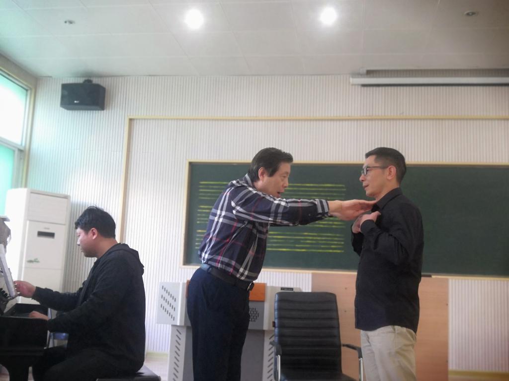 在授课过程中,赵登营教针对不同教师不同声部的发声方式、腔体位置进行一对一的教学指导。如针对赵要钦老师男中音声部,强调应该加强胸腔的训练;针对郭楠楠老师民歌演唱强调注意调整喉位;与此同时,赵登营对演唱作品情感的处理细致入微,针对韩冰老师演唱作品的风格,要求根据不同调式的转换,声音的音色进行改变,便于细腻地表现作品的不同情感色彩。最后,赵登营教授结合员工专业水平对本科生和研究生进行个别指导。通过员工的演唱,赵老师对公司员工演唱水平和教师的教学水平加以肯定,并对员工的专业发展提出进一步的要求。赵登营教授的指导对云顶国际vip.888教师队伍的专业发展,对提高云顶国际vip.888本科教学质量具有重要意义。