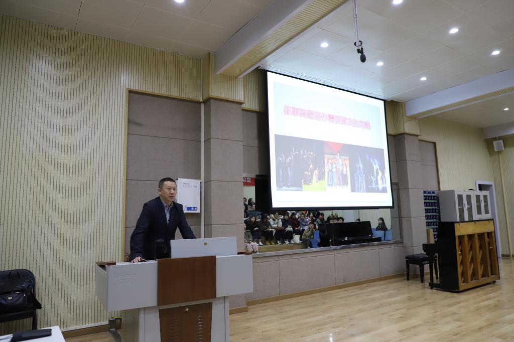 讲座上,刘炼教授由“什么是叙事舞蹈?为什么要叙事?”两个问题展开,选取了《汉宫秋月》、《安全区》、《南京•亮》等舞蹈作品,通过“以看为主、以讲为辅”的模式,在舞蹈案例赏析中深入分析了“叙事性舞蹈作品主要是由哪些要素构成的?”“叙事性舞蹈作品的表现形式是如何呈现的?”、“叙事性舞蹈作品是如何反映出他的功能和价值的?”、“叙事性舞蹈作品为何注重现实主义创作手法的运用?”、“叙事性舞蹈作品为什么把人物形象塑造的那么重要?”、“抒情性舞蹈作品与叙事性舞蹈作品有何异同?”等6个问题,分别对叙事性舞蹈作品的构成要素、表现形式、功能价值、创作手法等方面进行直观详细的阐释,丰富了在座师生的舞蹈创作理论视野,提高了实践操作水平。讲座后,刘炼经理就本次讲座与各位老师和同学展开讨论,同时也解答了老师和同学的疑问与困惑。