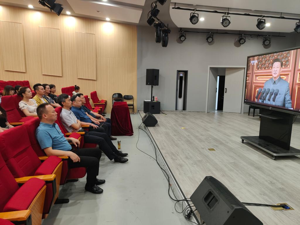 7月1日上午8时,庆祝中国共产党成立100周年大会在北京天安门广场隆重举行。中共中央总书记、国家主席、中央军委主席习近平出席并发表重要讲话。公司师生采用集中与分散收看相结合的方式收听收看了大会直播。在艺术楼八音讲堂,副经理陈新宇、任远,党委副书记郭振与师生党员一起集中收看直播。已离校的员工在家自觉观看、学习。