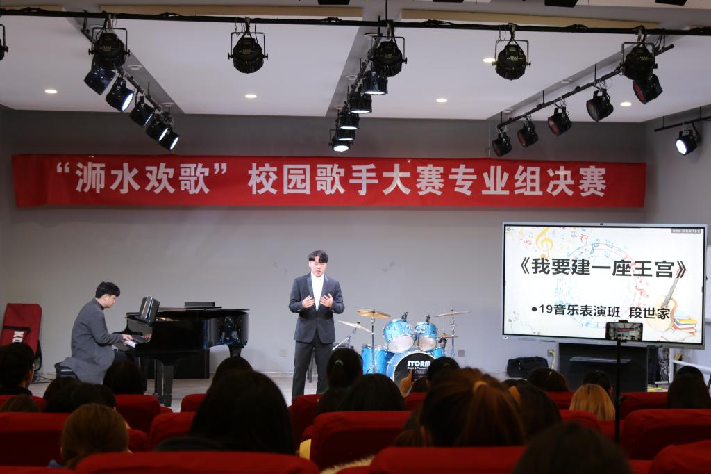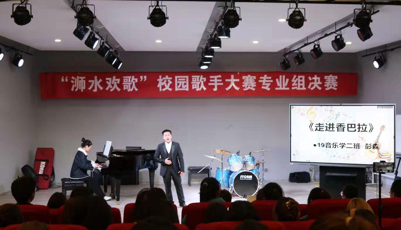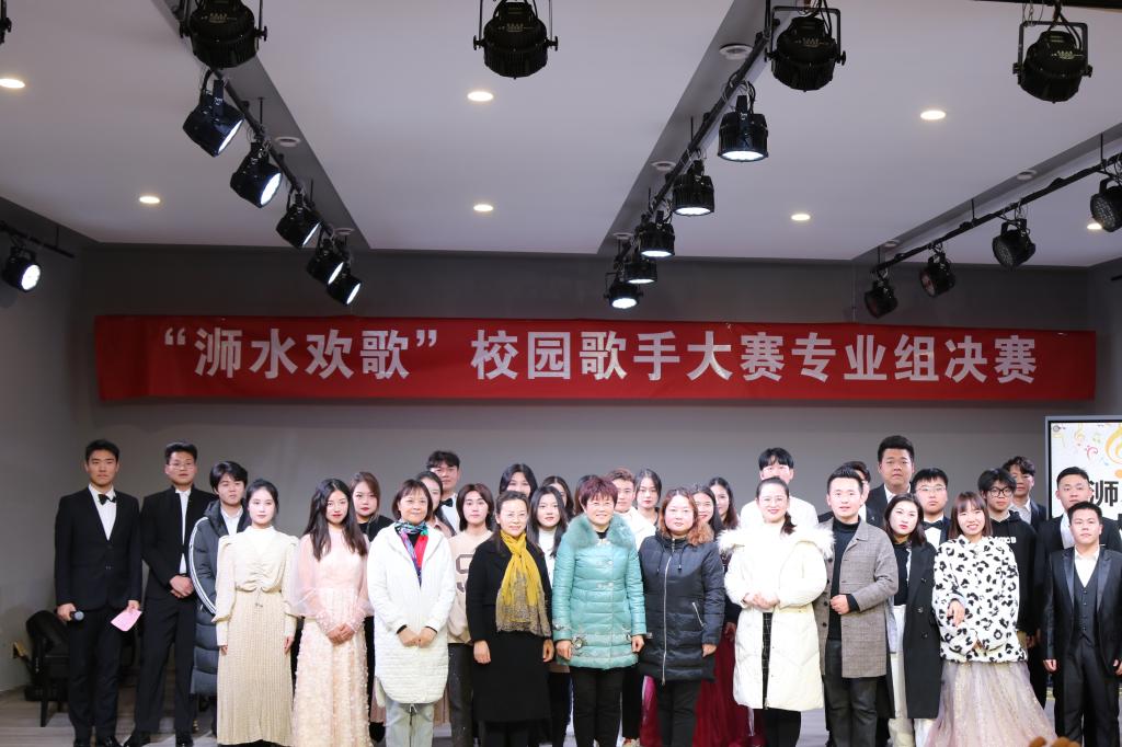 弘扬青春旋律,唱响和谐校园,由信阳师范公司校团委主办,云顶国际vip.888承办的“浉水欢歌”校园歌手大赛专业组比赛决赛,于12月3日在艺术楼八音讲堂拉开帷幕。公司声乐教研室韩冰,刘世嵘,刘红侠,郭楠楠,梁凯枫等五位专业老师出席活动并担任评委。