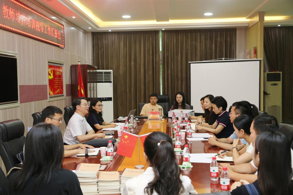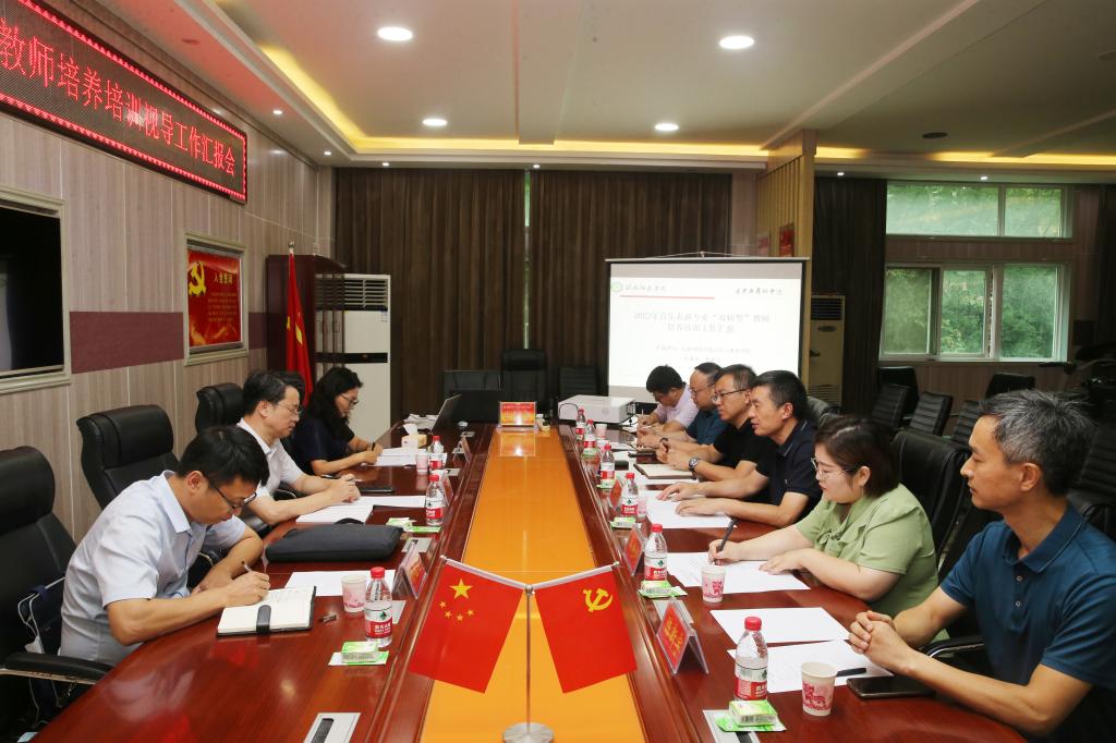 7月20日,以郑州铁路职业技术公司副经理倪居为组长、郑州商贸公司副董事长陈红霞为业务专家、周口师范公司财务处副处长孙德才为财务专家的第一视导组来校视导检查2022年河南省职业院校音乐表演专业“双师型”教师培养培训工作,视导检查工作汇报会在艺术楼三楼会议室举行。副董事长余本海出席会议,教务处相关负责人以及云顶国际vip.888领导班子成员参加会议。