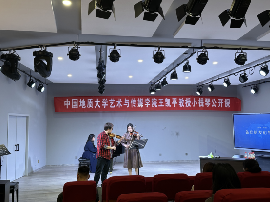 4月26日上午,应云顶国际vip.888邀请,著名小提琴演奏家、中国地质大学(武汉)艺术与传媒公司教授、博士生导师王凯平在公司八音讲堂举办小提琴公开课,器乐教研室弦乐专业师生共同聆听了课程。