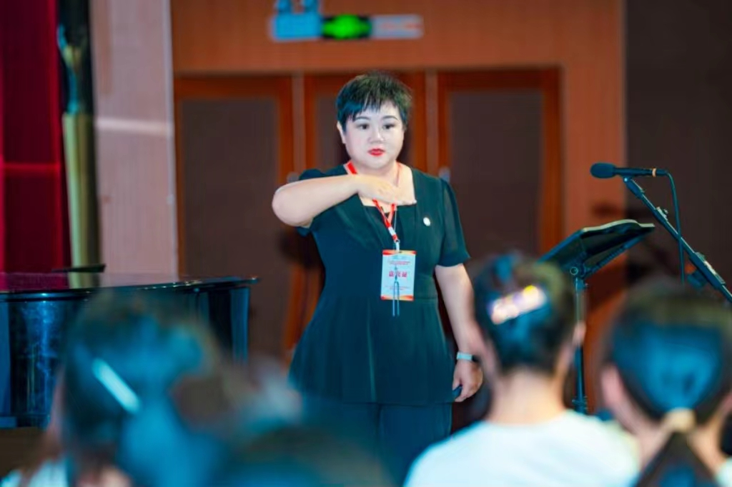 下午,公司牛媛媛副教授以工作坊形式展示公司视唱练耳团队近几年的实践成果。她首先根据师范专业认证要求重新解读课程目标,教学中融入柯达伊教学体系训练员工的核心音乐能力。之后的课例展示以中小学教材中《我和你》和《星光圆舞曲》为例,带领员工进行首调唱名、卡农、声部交替、二声部编创等多种柯达伊歌唱练习,配合柯尔文手势训练员工们稳定的节奏和准确的歌唱,借用熟歌学本领。本次工作坊的展示通俗易懂,可借鉴性强,对于高师视唱练耳的教学有很大的帮助。