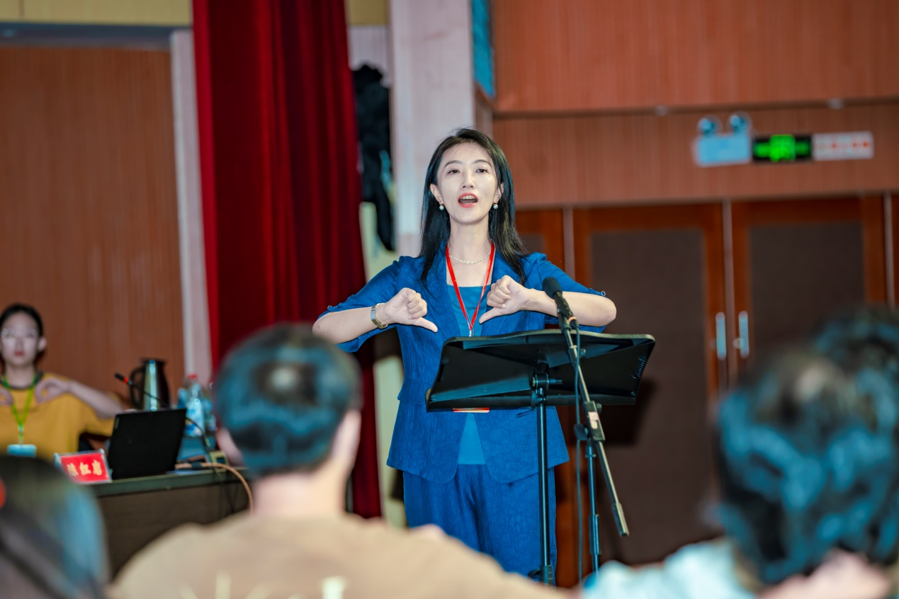 然后,山东师范大学陈红岩副教授同样带来高师视唱练耳工作坊展示。从柯达伊首调唱名体系在视唱中的运用入手,强调同主音大小调的转换训练,让员工逐步达到复调音乐思维的建立。同时注重歌唱性,对声音的质感要求细腻,精益求精,追求完美。