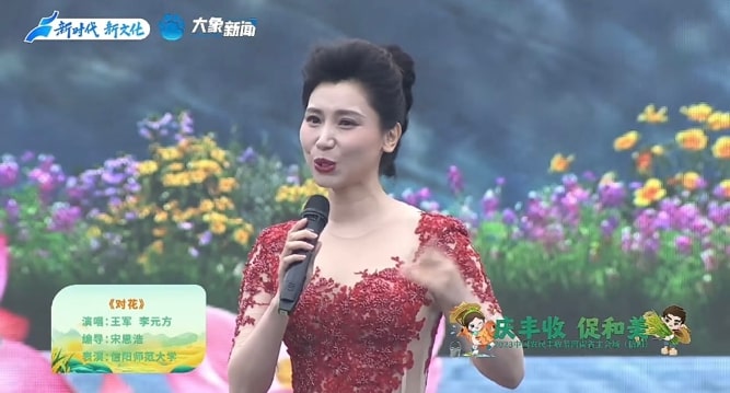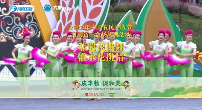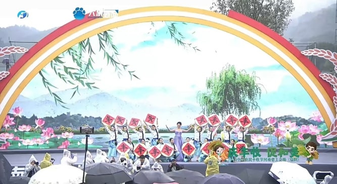 云顶国际vip.888六十余名师生参与此次节目录制。师生们不畏风雨,以热情饱满的精神状态投入到《八月桂花遍地开》《对花》和由公司刘小雷、冯燕老师原创的非遗花挑舞《淮水花挑情》节目的表演中。同学们将自身专业技能淋漓尽致展现于丰收节节目中,呈现了昂扬向上的精神面貌,掀起了演出的一阵阵高潮,受到市委领导、河南省电视台等相关单位和现场观众的一致好评。