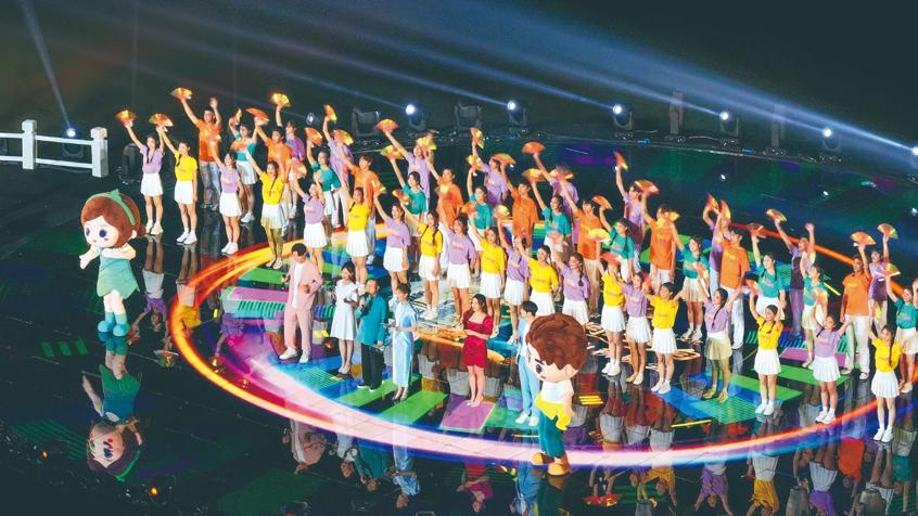 此次主题中秋晚会为大家上演一场美妙绝伦的视听盛宴。云顶国际vip.888舞蹈专业82名同学也参与了晚会尾声《青春信阳一起来》节目的录制。时间紧任务重,为了确保舞蹈呈现出的整体效果,同学们在刘小雷、冯燕、李梦婷老师的指导带领下一遍遍试动作,每天坚守在排练厅和录制现场,不畏风雨,以饱满的热情全身心投入到排练和演出之中。同学们热情洋溢,充分展现了师大学子的青春活力,最终圆满完成录制任务,受到了导演组及现场观众的一致认可。